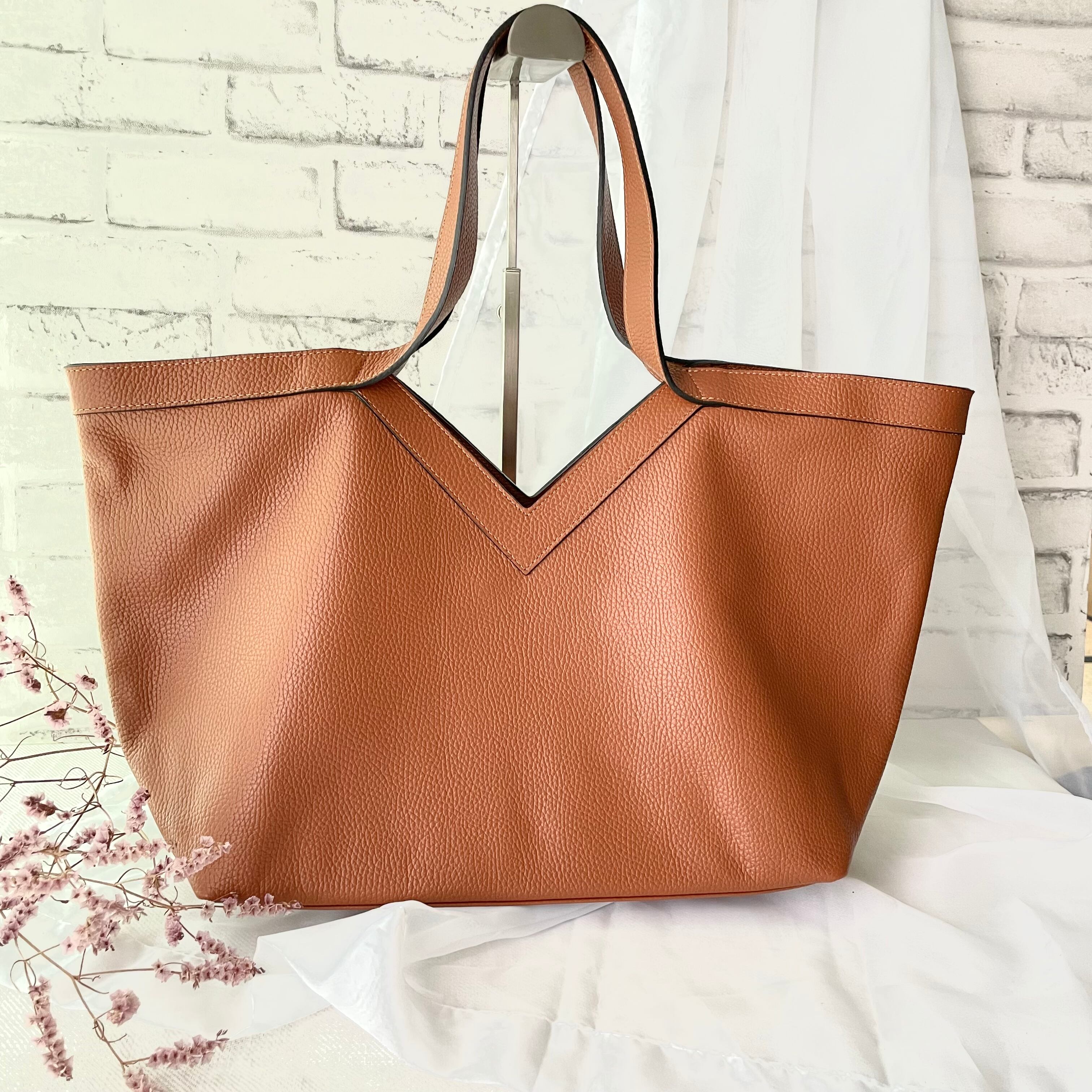 上質なイタリア製の型押しレザーを使用した、Angelottiおすすめの本革トートバッグ。