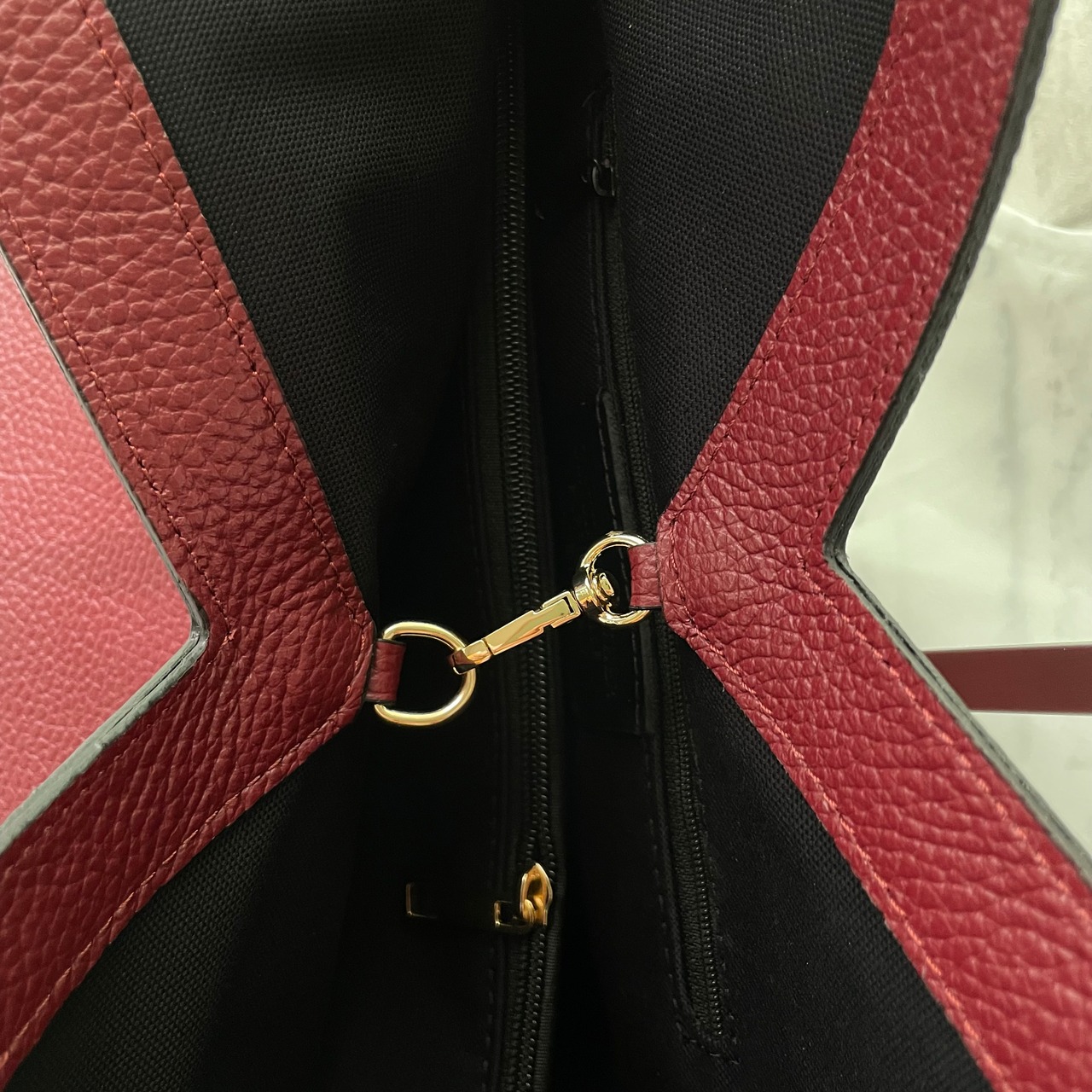 深みのあるレッドカラーとV字カットの個性的なデザインが、洗練された印象を与えます。