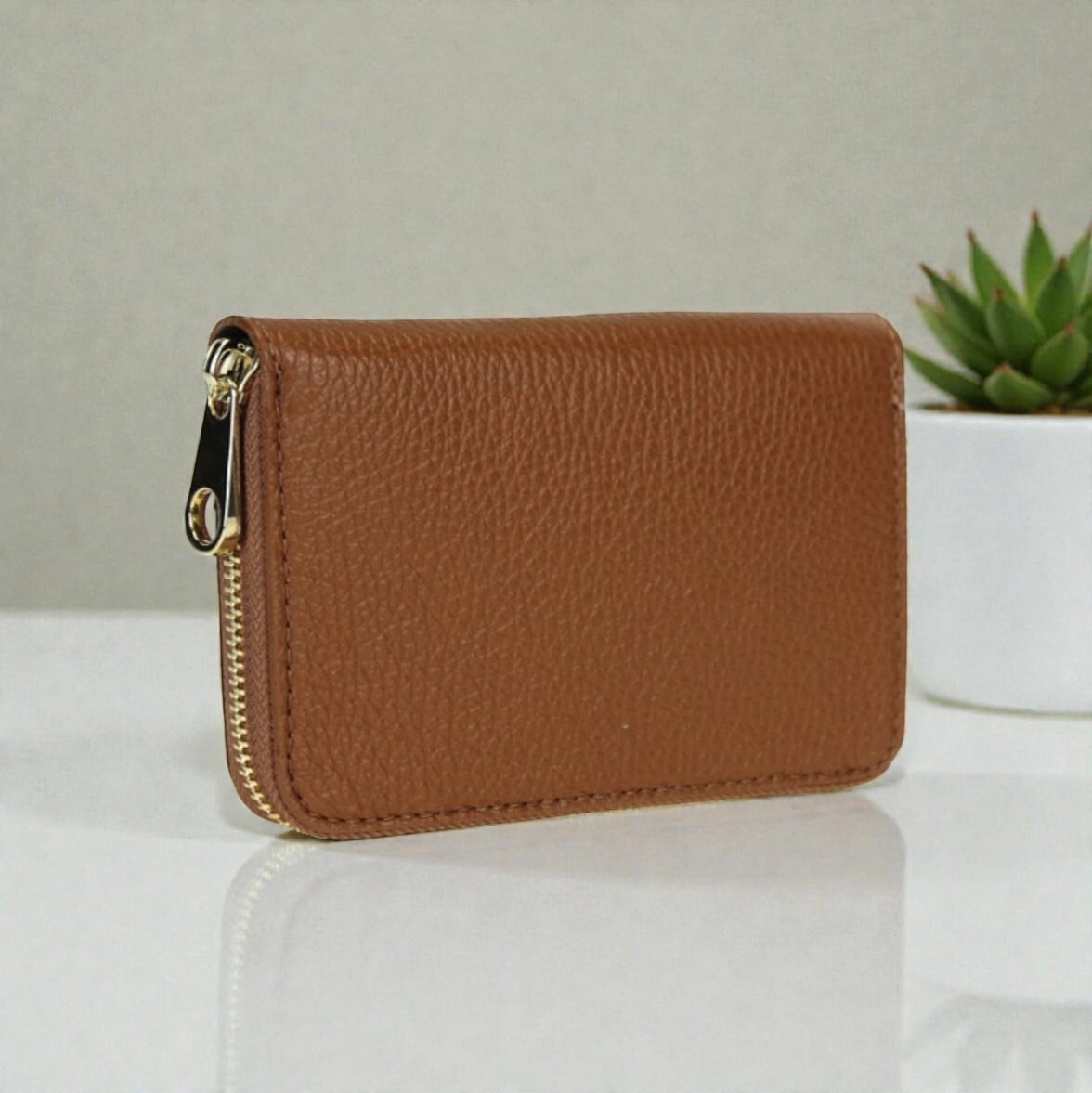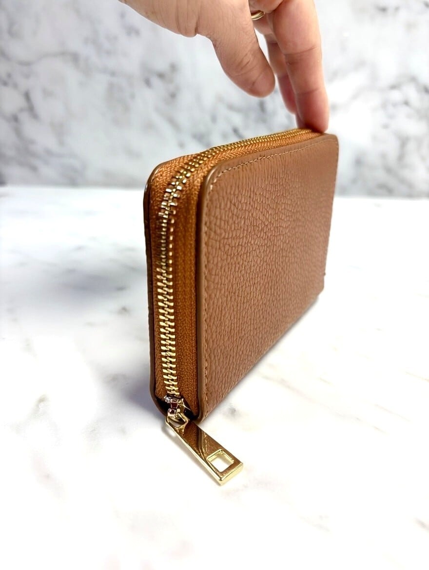カーフレザー100%のコンパクトファスナーウォレットです。