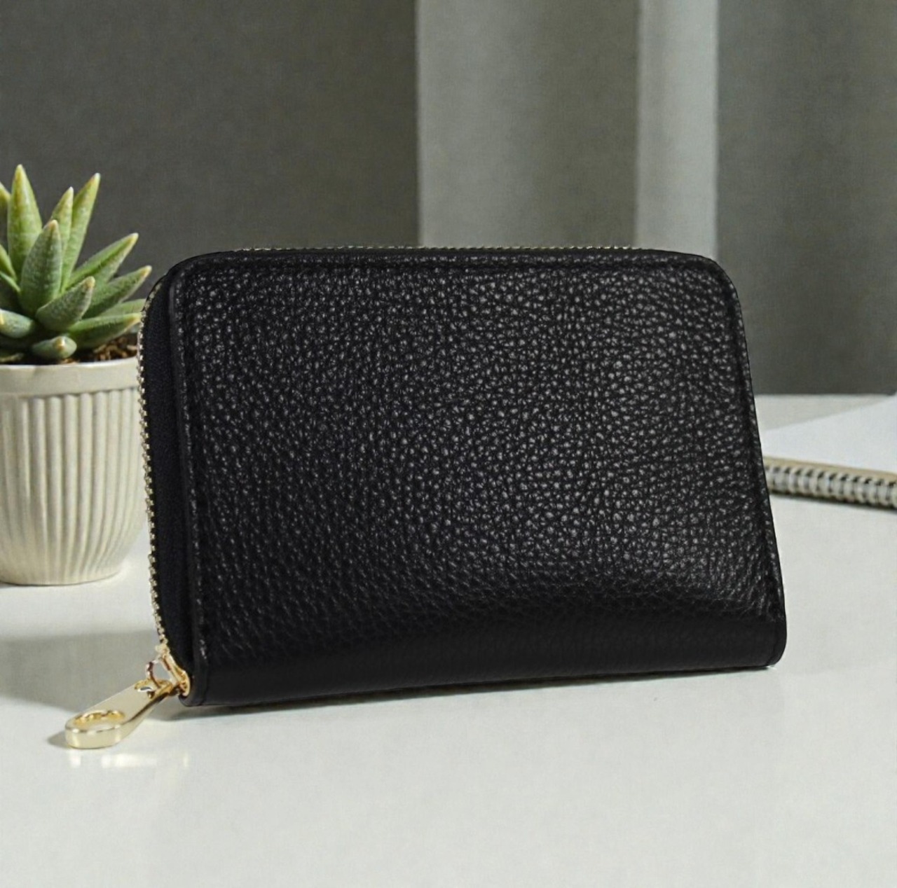 控えめなシボ感と、落ち着いたゴールドカラーの金具が